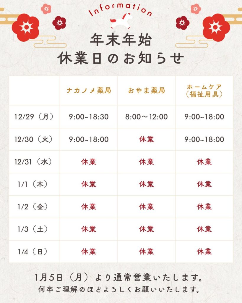 【年末年始の営業日】